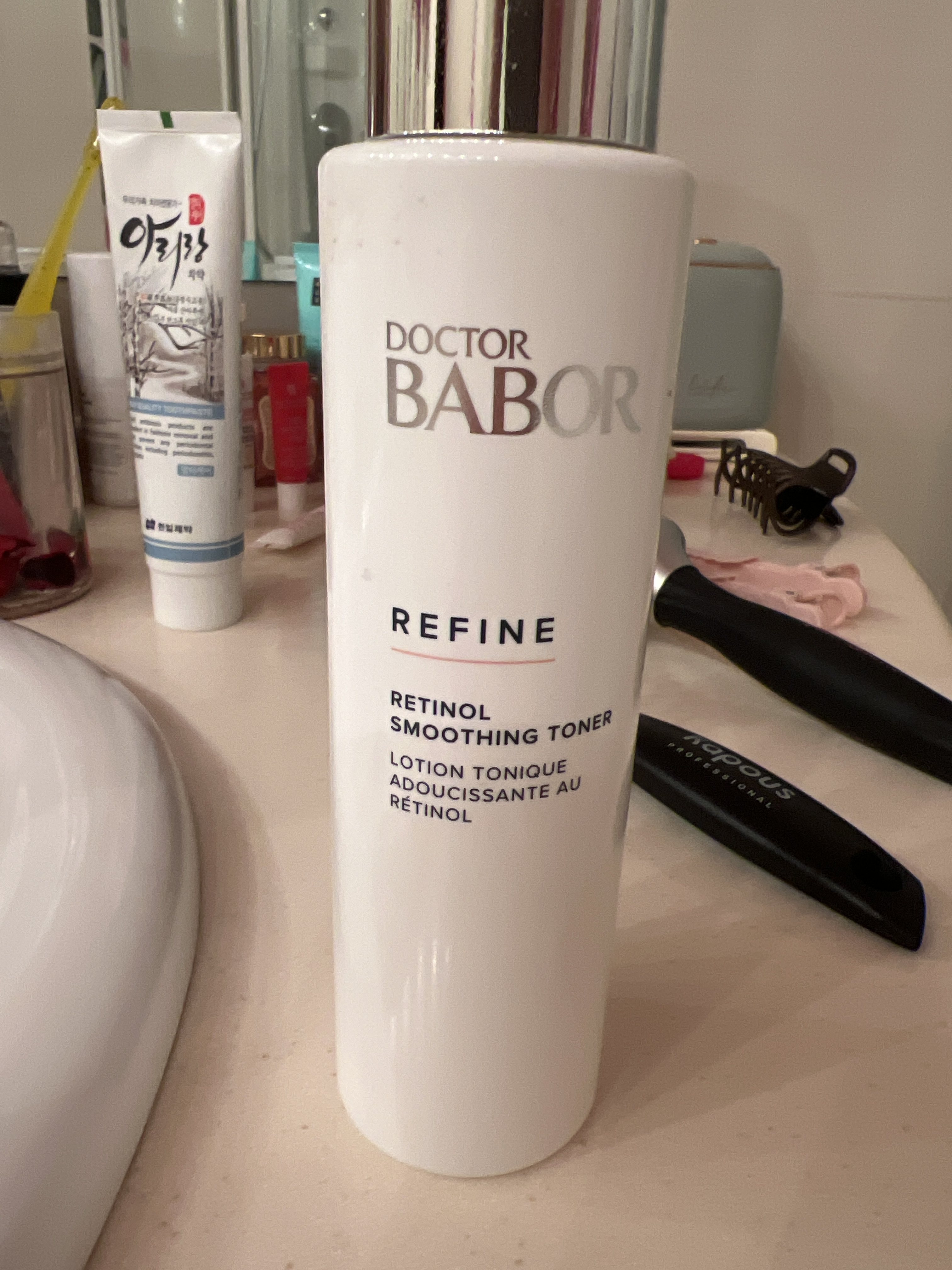 С данным тоником столкнулась в тревел версии, отнеслась к нему скептически) пока не увидела результат. Наношу перед сном после термо умывалки и перед кремом. На утро лицо свежее и самое что главное для меня, уходят мелкие покраснения. Цвет лица становится однородным свежим а сама кожа бархатная. Поэтому решила заказать большой объем. Спасибо Бабор