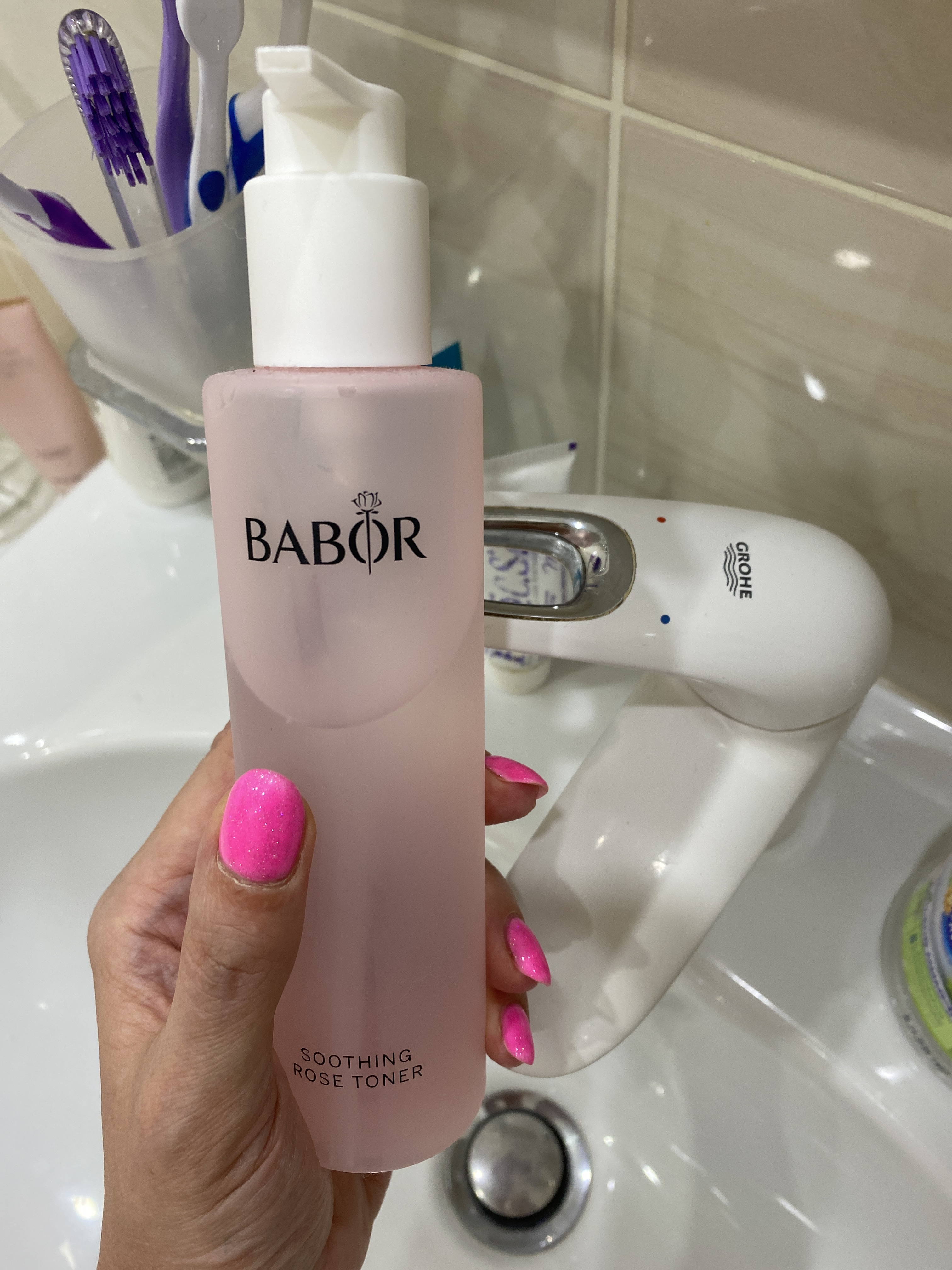 Мой любимый продукт из линии очищения. Тонкий аромат розы обволакивает вас, кожа становится увлажненной, бархатной. Очень удобно использовать тоник с дозатором. Очень приятная консистенция тоника.